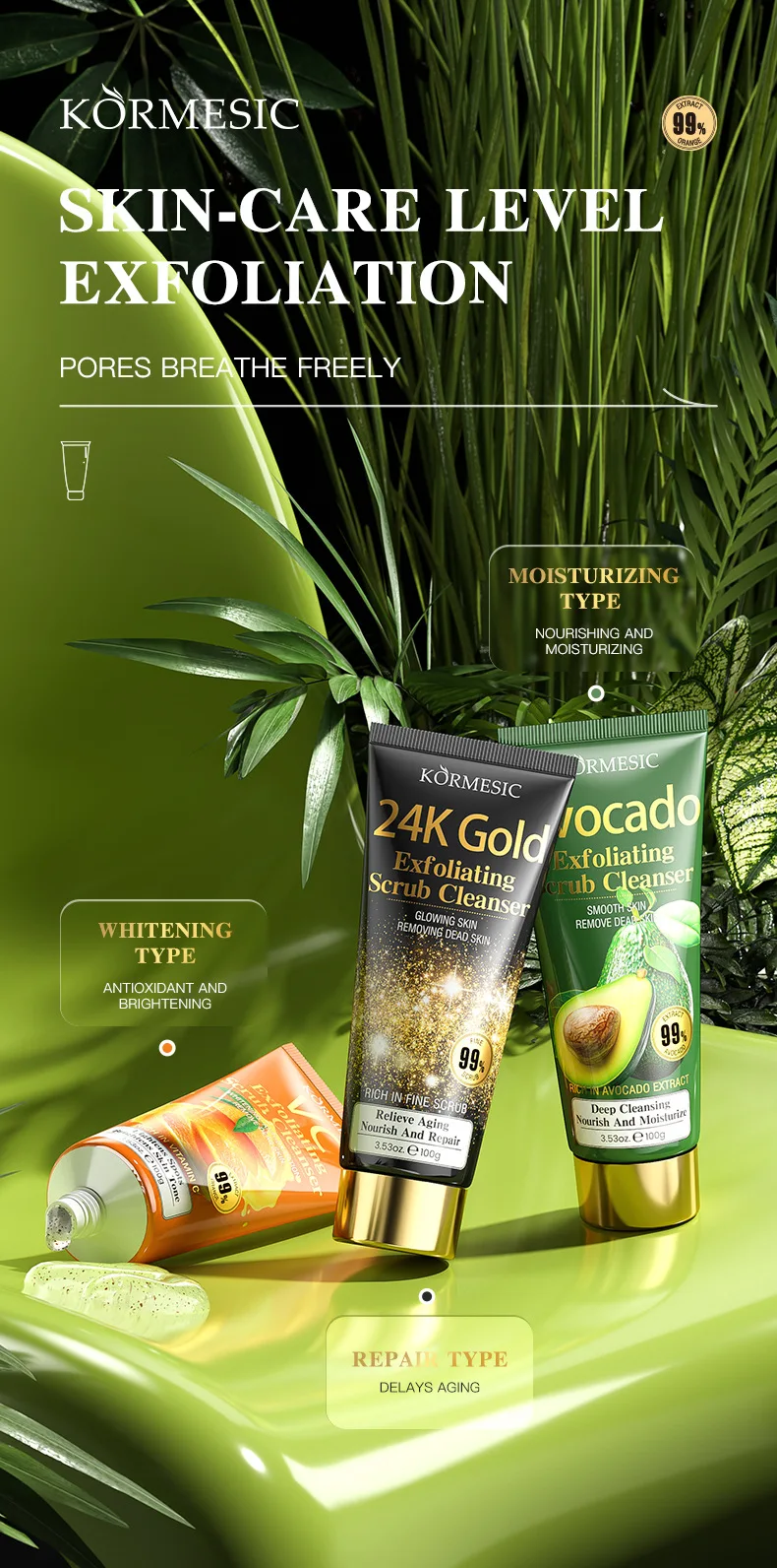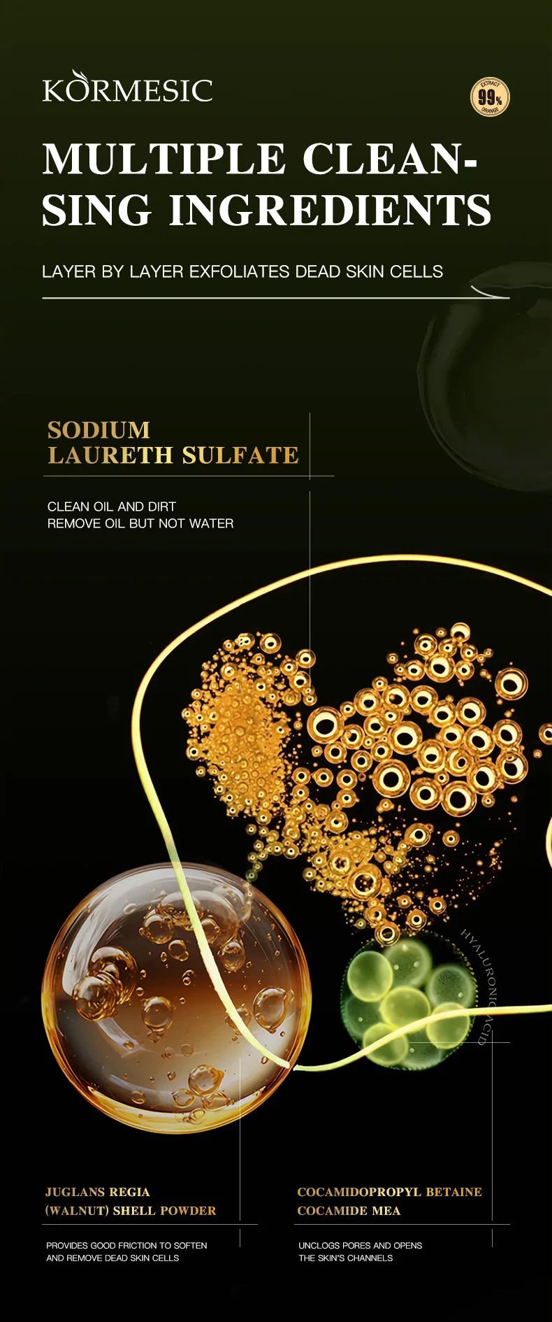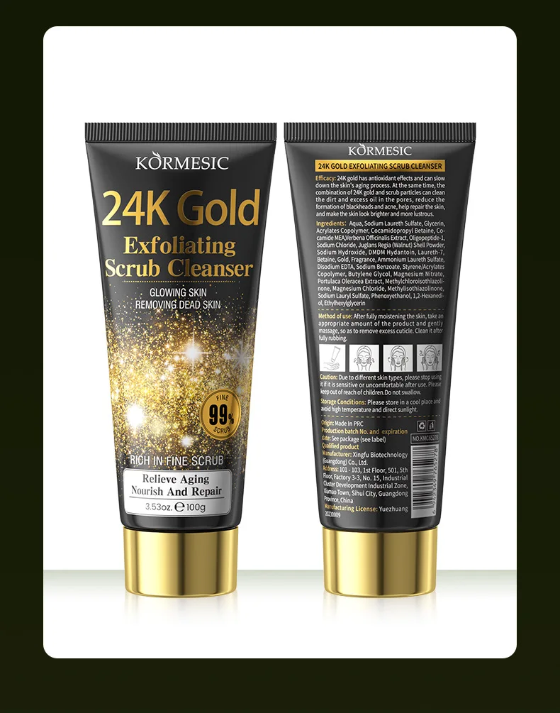 KORMESIC 24K Gold Exfoliating Facial Cleanser Moisturizing Oil Control Cleansing Face Wash Foam Skin Care